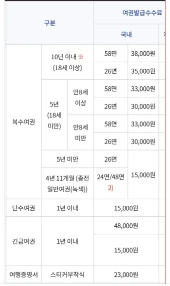 여권 발급 비용도 알아둬야 할 중요한 정보죠. 2025년 현재 수수료는 다음과 같습니다.